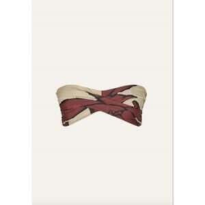 Enhance your beachwear collection with the Johanna Ortiz Palms Sea Sprite Bandeau Bikini Top, featuring a captivating palm print in ecru, red, and black. This bold swim top is crafted from 78% recycled polyamide and 22% elastane, offering both sustainability and comfort. Designed for true-to-size fit, its tie fastening allows for adjustable wear, making it perfect for beach days. Pair this boho chic piece with matching bottoms for a seamlessly stylish ensemble.