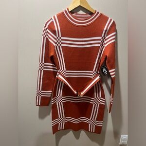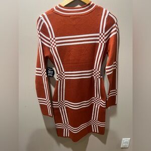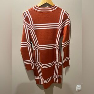 Step out in style with this elegant rust plaid dress. Featuring long sleeves and a chic design, it's perfect for any occasion.