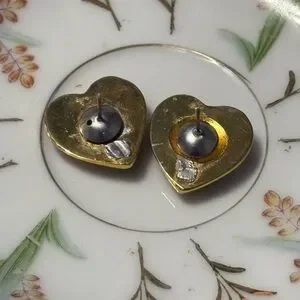 Charming heart-shaped earrings with colorful floral accents. Ideal for any occasion. Well loved vintage earrings. Please see the condition of the back of the earrings in the last picture.