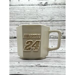 50th Anniversary 1998 Nascar Jeff Gordon Mug. Octagon shaped cream colored mug with Jeff on the front ,# 24 on the other.