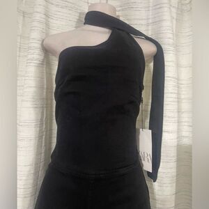 Zara asymmetrical tight jumpsuit size XS, black denim, straight semi-flared legs, back out, very cute and comfortable New with label