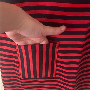 A Tommy Hilfiger classic the red and navy striped dress. fabric is thick and so comfy, quarter sleeve with pockets! Great for office to holiday party!
