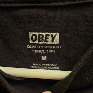 Sleek black tee with Obey logo. Short sleeves for casual style.