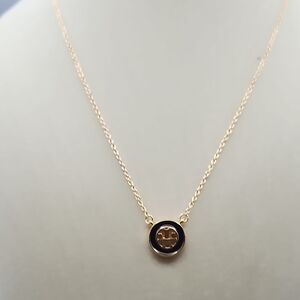 Chic necklace by Tory Burch. Features a gold chain with a black and gold emblem pendant.