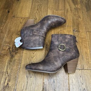 NWT BareTraps Womens Lucia Brown Snake Skin Side Zip Buckled Ankle Boots Sz 8.5