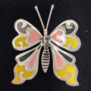 Mexico 9.25 Sterling Silver pin/brooch. Pre-owned inlaid design butterfly.