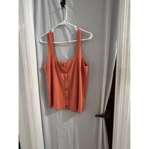 By Anthropologie Orange Faux Button Down Tank Sweater Sz L Lightweight