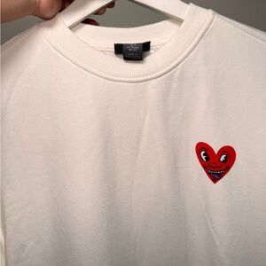 White crewneck sweatshirt from the H&M collaboration with the iconic artist Keith Haring.