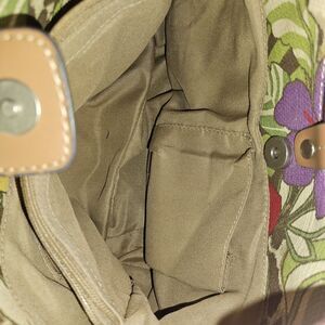 Y2K Relic Fossil Leopard Floral Bag Purse Wooden Handles Crossbody Denim Canvas