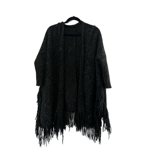 Women’s Cozy Black Fringe Cardigan