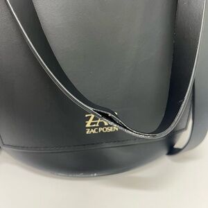 Chic black tote with gold logo accent. Sleek and stylish design. Perfect for any occasion. look at the pictures for some wear and tear.