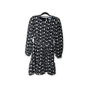 Anthropologie Maeve Black White Square-Neck Tie-Strap Midi Dress Checkered Plaid SZ M