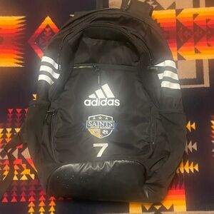 Adidas backpack with ball compartment. Side water bottle holders have some wear (see photos).