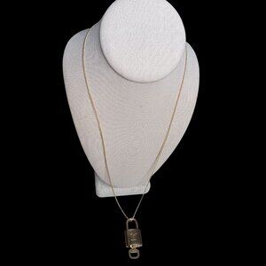 Authentic Louis Vuitton Lock & Key on gold-plated unbranded chain. Vintage LV lock #323. Preowned good condition with noticeable wear and patina—please review all photos. Chain is approx. 24 inches. A great statement piece for styling or layering.