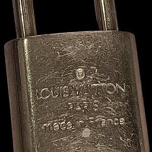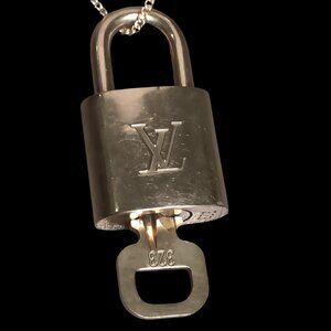 Notes: Visible signs of wear, scratches, and patina on both lock and key (see photos). Chain clasp functions properly. Lock and key are an authentic LV set.