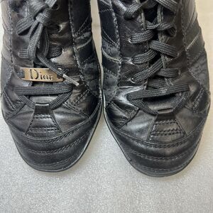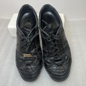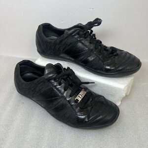 Christian Dior Vtg Trainers Low Black Leather Canvas Womens Sneaker Sz 37.5 US 7