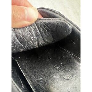 The product is a pair of vintage Christian Dior trainers in black leather with canvas accents. These low-top sneakers are designed for women in a US shoe size 7 and EU shoe size 37.5. The Dior brand adds a touch of luxury to these athletic shoes, making them a stylish and unique addition to any wardrobe. The combination of leather and canvas materials gives the shoes a durable and fashionable look, perfect for adding a touch of sophistication to any outfit.