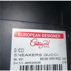 Elegant Gucci sneakers in beige with green accents. Ideal for everyday style. In good condition just bottom has some yellowing overall still have lots of life left on