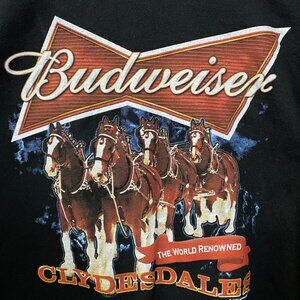Junk Food Budweiser Clydesdales Beer Crewneck Sweater Large generally measures 23 inches pit to pit and 29 inches long new overstock condition amazing crewneck perfect for fans of the beer brand Budweiser