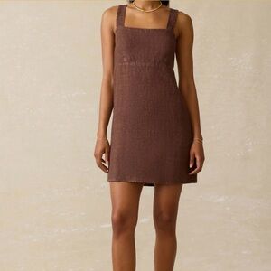 Faherty Cocoa Brown August Linen Mini Dress, Medium