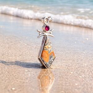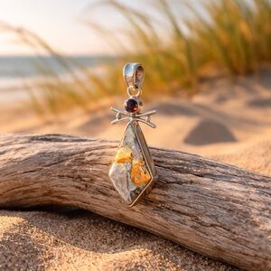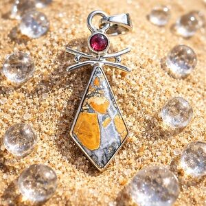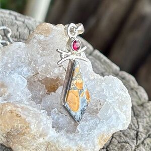 Maligano Jasper and genuine garnet pendant necklace