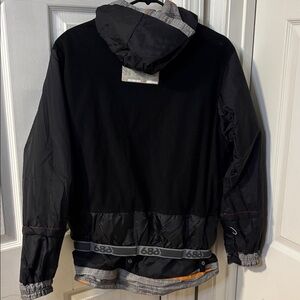 Stylish gray jacket with bold orange stripes. Perfect for warmth and comfort. Size 14-16 Youth Boys