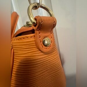 Rare and Stylish Louis Vuitton Epi shoulder bag. Vibrant orange color. Elegant removable shoulder strap. Perfect for any occasion. This is a preloved, authentic Louis Vuitton and does have some signs of preloved use including a few marks inside and outside, small scratches, stains, small tones of tarnishing. This is an exceptional and uniquely rare bag. Please refer to photos and video. Additional photos and video will be taken and provided as requested to the buyer to ensure a smooth purchase for both the buyer and the seller. This is a live show and final sale item.