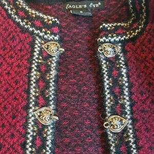 Vintage Eagles Eye Wool Fair Isle Style Sweater knit cardigan Heart Buttons S