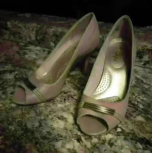 Delflex comfort beige and gold women's high heel pumps size 9 and 1/2