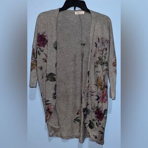Elegant cardigan with vibrant floral design. Soft fabric. Perfect for layering.