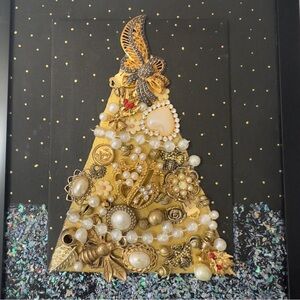 Handmade Vintage Jewelry Christmas Tree framed