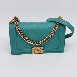 CHANEL Boy Green Leather Shoulder Bag 2650-080524