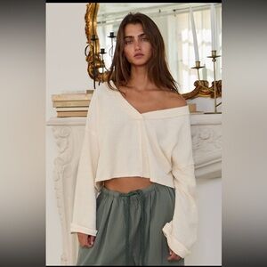 Elevate your wardrobe with our BUCKETLIST Cream Cutout Back Adjustable Tie Pullover Crop Top. Featuring a V-neckline, dropped shoulders, and long sleeves, this top offers a stylish and versatile look. The back cutout with adjustable tie adds a unique touch, while the raised seam detailing and slouchy, oversized fit provide ultimate comfort.