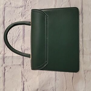 Elevate your style with this chic emerald satchel. Featuring a striking gold chain detail, it's the perfect accessory for any outfit.
