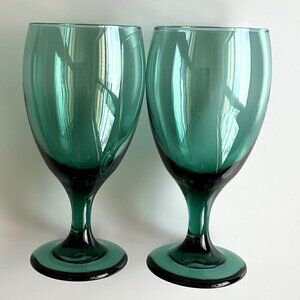 LIBBEY VINTAGE GREEN WINE GLASSES SET OF 2