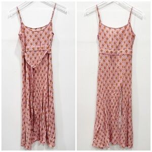 Olivaceous Spaghetti Strap Dress Side Slit Medium Pink Tie-Back
