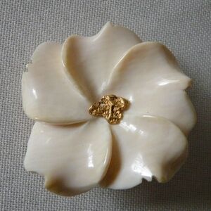 1950s tourist jewelry made in Alaska, hand carved flower of bone or such, with a real gold nugget center.