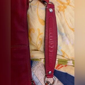 Coach Zoe Hobo Red and Tan/Brown Signature Shoulder Bag - very clean!