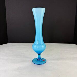 Vintage Blue Opaline Glass Bud Vase Made in Italy 9.5 Inch