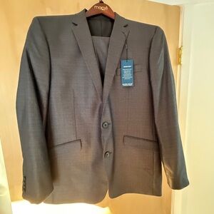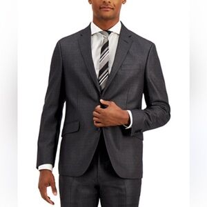 Stylish charcoal suit for modern elegance. Ideal for formal events. 42R jacket and 35@ waist pants. NWT. A perfect holiday suit! Unworn and perfect—just a little wrinkled from remaining in the purchase bag!