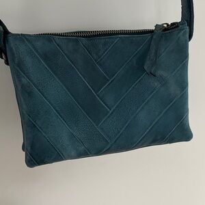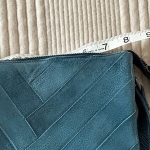 Teal blue textured crossbody bag by Latico. Multiple inside pockets. Zipper closure. 8” width x 6” height. Adjustable strap. Brushed silver tone hardware. Perfect for any occasion.