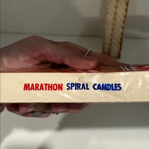Set of 4 red and white spiraled taper candles from Marathon Gas Station - HOW NEAT?! Perfect for any occasion.
