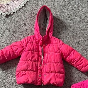 Warm and stylish puffer jacket. Features a cozy hood. Ideal for cold weather. Bundle and save