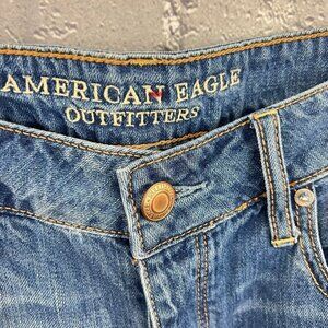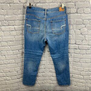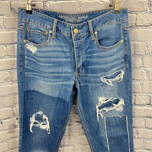 American Eagle Shadow Patched Tomgirl Distressed Button fly Jeans Size 8