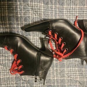 Sleek black ankle booties with stylish grommet details. Perfect for a bold look.