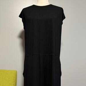 Eileen Fisher Black Jersey Cropped Wide Leg Jumpsuit