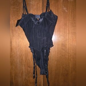 Chic black lace chemise. Features delicate lace design. Perfect for intimate moments.