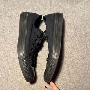 Sleek all-black Converse sneakers. Perfect for casual wear. Durable and stylish.
