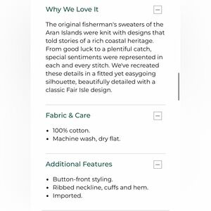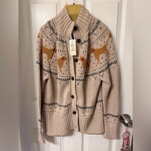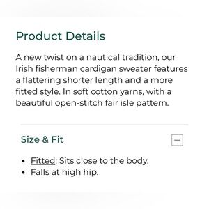 L.L Bean NWT Signature Cotton Fisherman Sweater, Short Cardigan Fair Isle Small