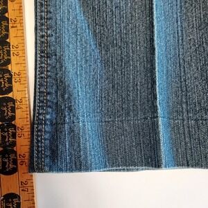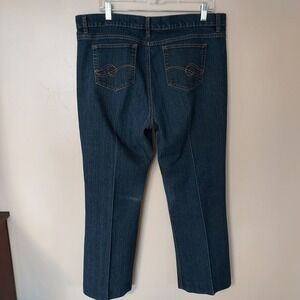 Jaclyn Smith Angel Fit blue denim jeans size 16. These classic straight leg jeans offer a comfortable and flattering silhouette with decorative stitching on the back pockets. Perfect for everyday wear, casual outings, or a relaxed office environment.
